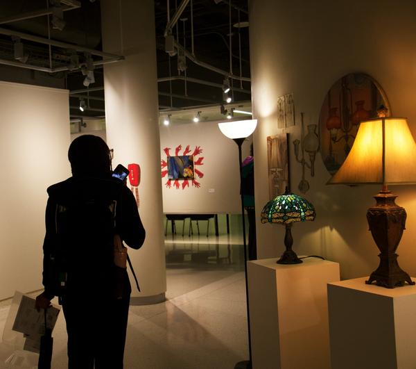 5th February 2025 Technology meets Art A student walks through a student art exhibit at the University of North Texas in the Union building.